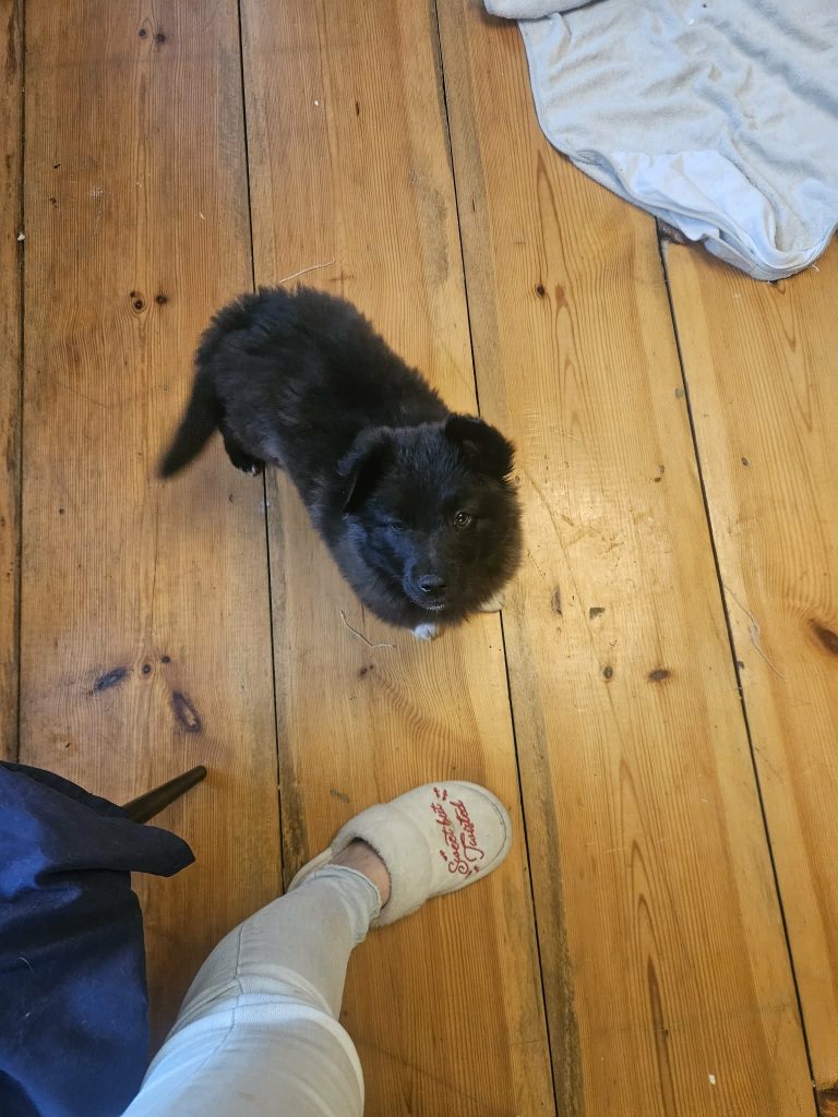 Ma dobry kontakt z psami, bardzo przyjaźni się ze swoim kompanem z boksu Orionem, chociaż bywa i tak, że zacięcie potrafi bronić swojej miseczki